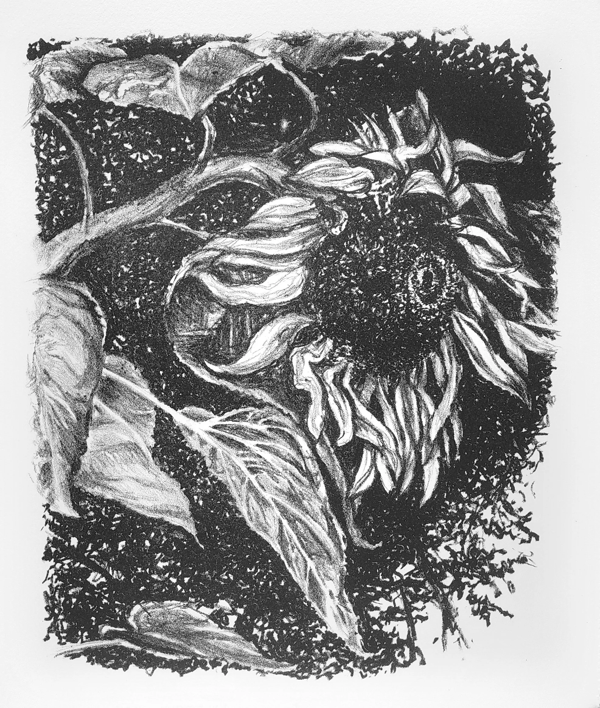 Winter Sunflowers. 2024 Lithograph 12”x 10” Edition of 30